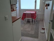 Myyn Kajaanin Palokankaalla kolmannessa kerroksessa (on hissi) sijaitsevan krstalo päätyhuoneistoni (k+oh+3mh+wc+kph)Taloyhtiö on hyvin hoidettu ja kaikki suuret remontit tehty (Jopa katto on uusittu! ) ostin asunnon 2006, jolloin teetetin pintaremonttia mutta toki pinnat kaipaavat jo päivitystä, aattele voit tehdä ihan oman näköisen ja värisen ja mittaisen kodin itsellesi! Huoneita sekä itä- että länsisiivessä. Talosta löytyy kylmäkellari, 2 kpl saunoja (oman saunavuoron lisäksi voit käydä lenkkisaunassa) Pesutupa sekä vertaansa vailla oleva kuivaushuone, pyörävarasto, asuntokohtainen häkkivarasto. Talossa on jokunen autotalli ja auton lämmityspaikkoja. Huoneisto sijaitsee ehottomasti Palokankaan parhaalla paikalla, metän laijassa, isoista ikkunoista voit katsella puita ja metsän villieläimiä. Keittiönikkunasta voi myös kytätä ohi kulkevia ihmisiä ja autoja halutessaan, tai ainakin silloin kun ei ole lehti puussa - tulee tunne että asuisi omakotitalossa. Tämä asunto on paikalla josta on lyhyt matka Uuteen sairaalaan (800m) uuteen Lehtikankaan kouluun (turvallinen koulureitti!) Varuskuntakin ihan likellä. Uimapaikka Hoikanlampi melkein vieressä. Palokankaalla on kunnostettu ja valaistu leikkipuisto! Vajaan tai reilu kilometrin säteeltä löytyy pari kauppaa ja ettäämmältä enämpi, keskustaan noin pari kilometriä, riippuu minne oot menossa. Palokangas on erinomainen paikka asua jos olet liikunnallinen (voi myös olla että et vielä tiedä että olet-liikunnallinen) Vimpeli on pikku-Vuokatti, ilman turisti ruuhkaa! tai jos arvostat luontoa (Uuden sairaalan takana on esteetön terveysmetsäkin!) tai muuten ekologista, leppoisaa ja vaivatonta elämäntapaa. Asunto on tällä hetkellä vuokrattu, mutta vapautuu elokuun lopussa. Suunnittelemaan ja remppaamaan pääset sovittaessa jo aikaisemmin!