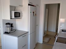 Paljon kaappitilaa, Laminaattitasot, Integroidut koneet, Pesukoneliitos, Keraaminen liesi, Jää-pakastinkaappi