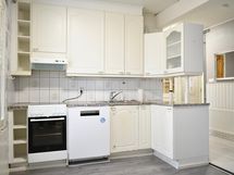 Jääkaappi, pakastin, astianpesukone, kaapistot, keraaminen liesi, liesituuletin