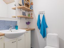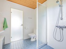 Pesutilojen varusteet: WC-istuin, suihku, suihkuseinä ja lattialämmitys. Erillisten WC:n lukumäärä: 2. Erillisen WC:n varusteet: WC-istuin, peilikaappi, allaskaappi, bidee-suihku ja lattialämmitys. Erillisen WC:n kuvaus: Alakerrassa ja yläkerrassa erilliset wc:t, lisäksi pesuhuoneessa wc.