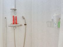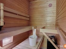 - Sauna, sähkökiuas, kylpyhuone, suihku, pesukoneliitäntä.