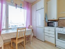 - Keittiön varusteet: Jääkaappipakastin ja liesi. Liesi: Sähköhella. Työtason materiaali: Laminaatti.