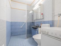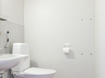 - Pesutilojen varusteet: WC-istuin, suihku, suihkuseinä, peilikaappi, bidee-suihku, allaskaappi, pesuallas ja pesukoneliitäntä. Pesutilojen kuvaus: Kylpyhuone remontoitu 2000-luvun alkupuolella. Erillisten WC:n lukumäärä: 1. Erillisen WC:n varusteet: WC-istuin, pesuallas, peili ja bidee-suihku.