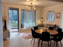 Asunnossa on kaksi makuuhuonetta. Asunnon käyttöala on 60 m2, ja se koostuu yhdistetystä keittiö-olohuoneesta, wc/suihku/sauna-kombosta sekä lasitetusta terassista.