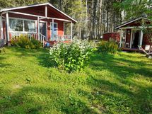 Vapaa-ajan asunto 63m2 ja pihassa lisärakennus 11m2. Sähköt, vesi, sauna, terassi, takka, sisällä sähköpatterit, hella, sisällä kompostoiva wc + ulkohuussi, liiteri täynnä puita. Vuokratontti n.650e/vuosi, merenrantaan n.150m. Himangan keskustaan n.4km.