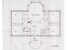 Yläkerrassa sijaitsee neljä makuuhuonetta, kaksi vaatehuonetta sekä tilava kylpyhuone ammeella. Avarasta ja avoimesta aulatilasta aukeaa rauhoittava näkymä joelle sekä käynti parvekkeelle.