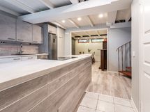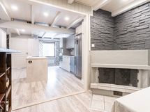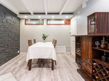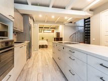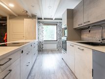 - Keittiön varusteet: Jääkaappi, erillinen pakastin (Arkkupakastin), astianpesukone, keittiösaareke, erillisuuni, liesi ja liesituuletin (integroitu keittotasoon). Liesi: Induktioliesi. Työtason materiaali: Laminaatti.