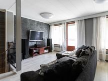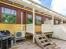 - Kaksi terassia: toinen asunnon etupuolella etelän suuntaan, mistä myös kulku asuntoon, toinen asunnon takana pohjoisen suuntaan.