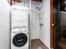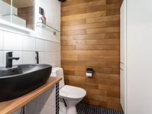 - Pesutilojen varusteet: Suihku, suihkuseinä, pesukoneliitäntä ja lattialämmitys (Ei kustannuksia osakkaalle). Erillisten WC:n lukumäärä: 1. Erillisen WC:n varusteet: WC-istuin, lattialämmitys (Ei kustannuksia osakkaalle), peilikaappi (led-valoilla), pesuallas, bidee-suihku ja erillinen kaappi. Erillisen WC:n kuvaus: Katto uusittu ja kattoon upotettu led-valot.