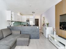 Olohuoneen ja keittiön välisen saarekkeen 3D seinä 2023.