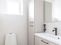 Allaskaappi sekä peilikaappi. Varustus: lattialämmitys, bidee-suihku.