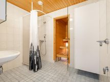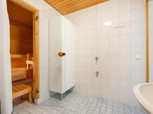 - Sauna, sähkökiuas, kylpyhuone, erillinen wc, suihku, peilikaappi (kph ja wc), pesukoneliitäntä, lattialämmitys (kph), kiinteät valaisimet. -