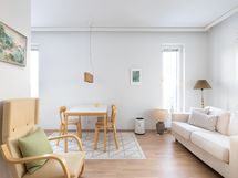 - Keittiön varusteet: Astianpesukone, jääkaappipakastin, liesituuletin, erillisuuni ja liesi. Liesi: Induktioliesi ja erillisuuni.