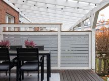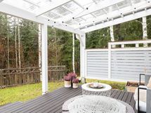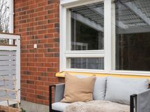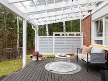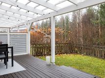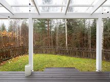 - Takapiha rajoittuu metsäalueen. Takapihan ilmansuunta on lounaaseen ja parvekkeen ilmansuunta koilliseen.