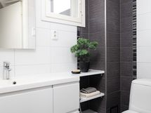 Kalusteet, pesuallas ja hanat uusittu (ei wc-istuin). Pistorasiat uusittu ja siirretty uuteen paikkaan. Ledivalaistus.