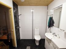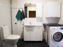 - Suihkuseinä, Suihku, Pesukonevalmius, Allaskaappi, Laattalattia, Lattialämmitys