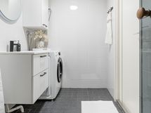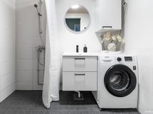 - Pesutilojen kuvaus: Kalusteet vaihdettu 2024. Varustus: pesukoneliitäntä, suihku, peili. Varustus: bidee-suihku.