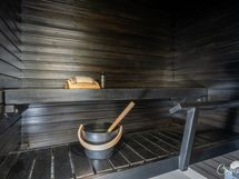 - Varusteet: sähkökiuas. Tunnelmalliseksi käsitellyt tummat pinnat. Seinämateriaali: paneeliseinä. Lattiamateriaali: laattalattia