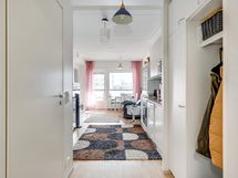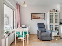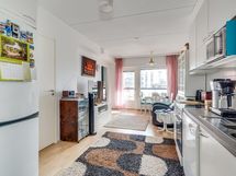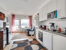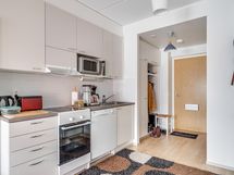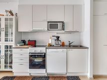 - Rosenlewin kodinkoneet, jääkaappi/pakastin, sähköliesi, liesikupu, astianpesukone, kaapistot, laminaattitasot, sälekaihtimet, verhokisko, käynti lasitetulle parvekkeelle