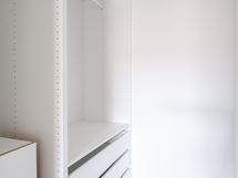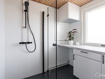 Säilytystilaa piisaa: makuuhuoneessa on tilava vaatehuone, eteisessä upouudet kaapistot, vessassa ja kylppärissä paljon laatikoita, ja lisäksi autokatoksen yhteydessä erillinen varasto.