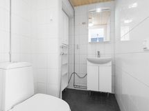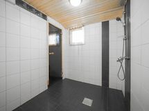 Sauna, puukiuas, kylpyhuone, erillinen wc, peilikaappi, allaskaappi, pesukoneliitäntä, lattialämmitys, kiinteät valaisimet.