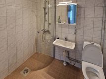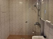 Suihku, Suihkuseinä, Peilikaappi, Pesukonevalmius, Laattalattia, Laattaseinä