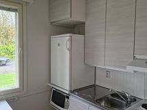 Paljon kaappitilaa, Laminaattitasot, Sähköliesi, Liesituuletin, Jääkaappi