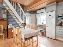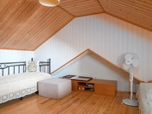 Lasiterassi ottaa Sinut vastaan, kun astut sisälle tähän viehättävään kotiin. Alakerrassa on kotoisa olohuone ja tupakeittiö, minkä kruunaa kaunis näkymä järvelle. Lisäksi alakerrassa on yksi makuuhuone sekä kylpyhuone ja wc. Yläkerrassa vinon katon alla on kaksi makuuhuonetta lisää, joten kompaktista koostaan huolimatta majoitustilaa löytyy runsaasti ja tilat ovat todellisuudessa virallisia neliöitään suuremmat.