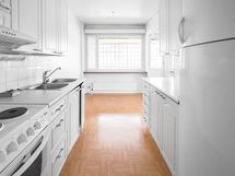 Jenkkikaappi, sähköliesi, liesituuletin, kiinteät valaisimet.