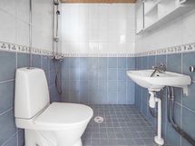 Kylpyhuone, suihku, peilikaappi, pesukoneliitäntä, kiinteät valaisimet.