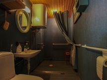 Varustus: pesukoneliitäntä, wc-istuin, suihku, peilikaappi.