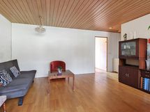 Keittiö: vinyylilankku. Olohuone: parketti. Makuuhuone 1: parketti. Makuuhuone 2: muovimatto. Makuuhuone 3: muovimatto. Sauna: laatta/paneeli. Kylpyhuone: laatoitettu.