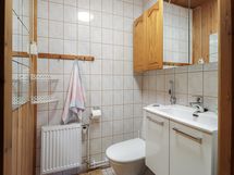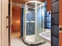 Sauna saunassa ei lauteita, sähkökiuas, kylpyhuone, erillinen wc, suihkukaappi, pesukoneliitäntä, lattialämmitys. Sähköinen lattialämmitys