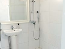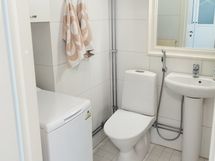 Varustus: pesukoneliitäntä, wc-istuin, suihku, peili.