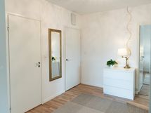 Lattia: Keittiössä: laminaatti. Pesutiloissa: laatta. Olohuoneessa: laminaatti. Makuuhuoneessa: laminaatti. Seinät: Keittiössä: maalattu, tapetti. Pesutiloissa: kaakeli. Olohuoneessa: maalattu, tapetti. Makuuhuoneessa: maalattu, tapetti.