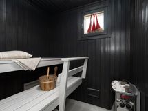 - Varusteet: Sähkökiuas. Tummaksi sävytetty sauna.