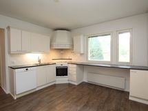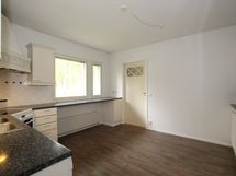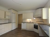 Keittiön varusteet: Jääkaappipakastin, liesi, erillisuuni, astianpesukone ja liesituuletin. Liesi: Keraaminen liesi. Työtason materiaali: Laminaatti. Suuri keittiö, jossa paljon kaapisto- ja tasotilaa.