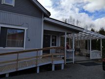 Ulko-ovella ramppi pyörätuolia varten.