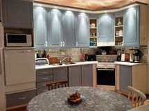 Astianpesukone, Jääkaappi, Pakastin, Sähköliesi, Tilaa isolle ruokapöydälle