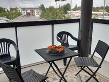 - Ikkunoita länteen, Parveke, Olohuone ja makuuhuone ilta-aurinkoon.
