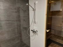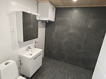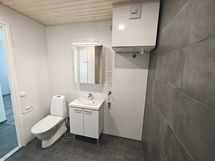 Varustus: pesukoneliitäntä, lattialämmitys, wc-istuin, suihku, peilikaappi, kiinteät valaisimet.