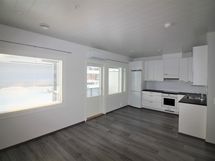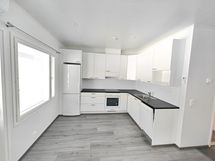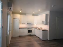 Liesi: induktio, erillisuuni. Työtasot: laminaatti. Kylmäsäilytys: jääkaappi/pakastin. Varustus: liesituuletin, astianpesukone, kiinteät valaisimet.