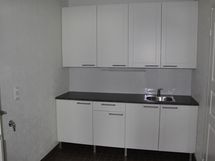 Liesi: keraaminen. Työtasot: laminaatti. Kylmäsäilytys: jääkaappi/pakastin. Varustus: liesituuletin, astianpesukone. lattialämmitys