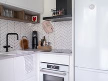 - Keittiön varusteet: Jääkaappipakastin (UPO), erillisuuni (Sisältää myös mikroaaltouunin, Bosch), liesi (AEG), astianpesukone (Whirlpool) ja liesituuletin. Liesi: Induktioliesi.