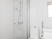 - Pesutilojen kuvaus: Laattalattia. Seinät laattaa. Varustus: Suihku, suihkuseinä, allaskaappi, peilikaappi, wc-istuin, pesukoneliitäntä.