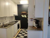 Paljon kaappitilaa, Terästasot, Astianpesukone, Liesituuletin, Keraaminen liesi, Jääkaappi, Pesukoneliitos