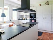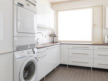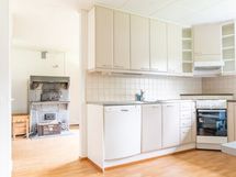 - - keittiö remontoitu vuonna 2022 Varustus: jääkaappi (apukeittiössä), pakastin (apukeittiössä), liesikupu, mikroaaltouuni, astianpesukone, kiinteät valaisimet. Liesi: keraaminen. Lattia: laatta. Seinät: maalattu.