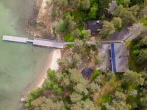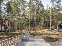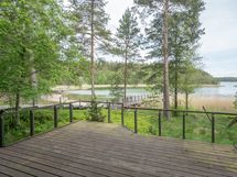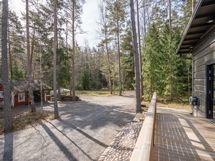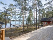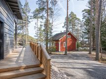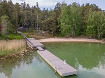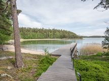 The forested and rocky 3760m2 beach property is easy to maintain and the landscape has been stylishly finished. In addition to the main building, the property has a sauna cottage built in 2000. There is a sandy beach and two piers on the shore, the larger of which has been dredged to a depth of 2.5m, making it suitable for a sailboat. The high-quality Marinetek pier also has water and electricity. There is no boat traffic past the sheltered cove. The drive to the destination is on a traffic-free road and only a couple of kilometers of sand road at the end.