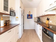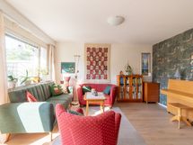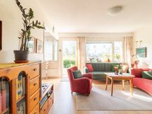 Denna ljusa tvåa på 62 m² ligger i ett lugnt område vid skogskanten och erbjuder utmärkta förutsättningar för ett trivsamt boende. Bostaden har ett vardagsrum med en passligt öppen kökslösning, sovrum, badrum, egen bastu och en separat WC. Den vackra och lättskötta gården ger dig möjlighet att koppla av utomhus och njuta av fina sommardagar. Till lägenheten hör också en egen biltaksplats och ett förråd, som ökar bekvämligheten och erbjuder gott om förvaringsutrymme.