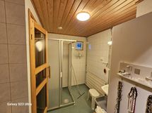 Valoisa ylimmän kerroksen kolmio saunalla.